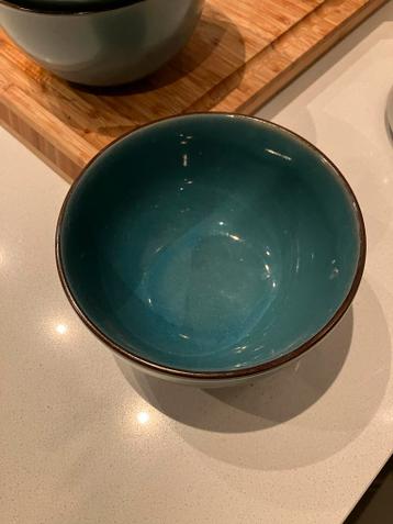 Set van 4 leuke kommetjes. 3 Zijn in goede staat, 1 heeft een kleine beschadiging aan de rand (zie foto). Ideaal voor soep, yoghurt of snacks.