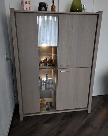 Leuke set meubels: vitrinekast met ingebouwde ledverlichting( zo foto 4 avondfoto) breed 125cm x hoogte 166cm x diep 48,5cm tvmeubel met kabelgoot( om kabels door te doen foto 9) breedte 180cm x hoogt
