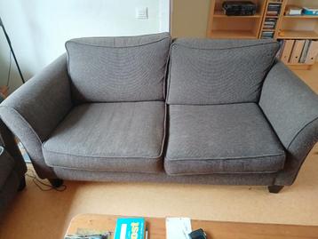 Twee bruine stoffen banken in goede staat. Opruiming ivm verhuizing.