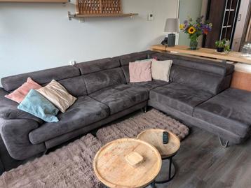 We doen onze hoekbank weg. Hij is jaar 8 1/2 oud, en nog prima in orde. De kleur is antraciet, maar oogt meer bruin. Natuurlijk, hij is gebruikt, en dat is ook te zien. Op de ottomane zitten wat gaatj