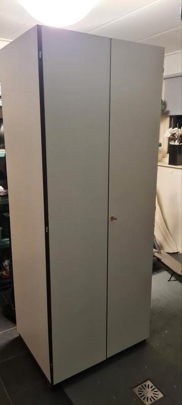 Ruime kledingkast met deuren en hangruimte. Ideaal voor het opbergen van kleding en andere spullen. De kast is in gebruikte staat, maar nog prima te gebruiken. Afmetingen: hoogte 200 cm of meer, breed
