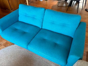 Mooie petrol kleurige bank te koop. De bank is gebruikt, maar verkeert nog in nette staat. Er is één klein vlekje aan de achterkant (zie foto). De bank gaat weg in verband met een verbouwing en herind