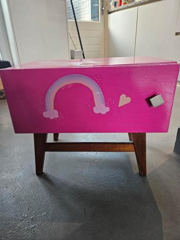 Even wat aandacht geven, schroefjes van pootjes vast zetten, stickers er af en verven. Super kastje verdet.