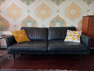 Moet snel weg. Mooie leren bank 2 1/2 zit met 2 fauteuils. Antraciet. Goed onderhouden. Lederland. Bank 200cm breed, stoelen 85cm. Nieuw gekost €. 6000. Rekening aanwezig..Ivm verhuizing niet mee