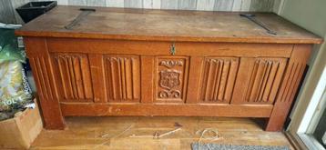 Authentieke dekenkist, afmetingen l128 x d47 x h54 cm. De kist is in gebruikte staat en heeft wat liefde nodig, maar is een mooi project om op te knappen. Ideaal voor opslag of als decoratief element.
