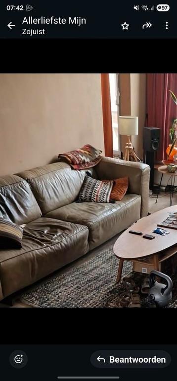 Gratis af te halen: een comfortabele, gebruikte loods 5 lederen 4-zits bank. De bank is 2.9 Meter breed en uitgevoerd in een mooie flesgroene kleur. Het is een heerlijke hangbank, perfect om lekker op