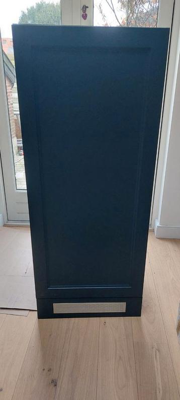 Deze inbouw keukenkast is zo goed als nieuw. Het was een verkeerde levering en heeft anderhalve maand in mijn keuken gestaan. Deur is donkerblauw en het paneeltje met het rooster ook. Ophalen in voors