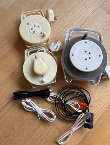 Diverse kabels en haspels om oude telefoons aan te sluiten. Verschillende soorten stekkers en aansluitingen. Ideaal voor de verzamelaar of hobbyist. Conditie varieert