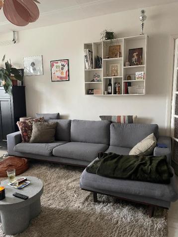 Hoekbank recht grijs met bruine poten. Van wehkamp