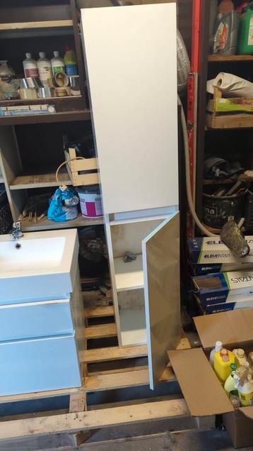 Gratis badkamer meubel 120 cm breed met spiegelkast 120 cm en smal zijmeubel. Van de onderste kast zijn van de twee lades dat witte plakspul iets losgelaten maar is denk ik wel te plakken ofzo. Voor d
