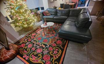 Comfortabele groene leren hoekbank. Gebruikt maar in prima staat. Beschikbaar vanaf week 11 in overleg- 2026 ivm levering nieuwe bank. Hoek gedeelte wat kaal, zie foto maar met met een potje leer vet