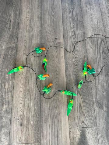 Gratis op te halen: snoer met papegaai en palmboom lampjes. 1 Lampje is kapot, maar past gewoon een nieuw kerstlampje in.