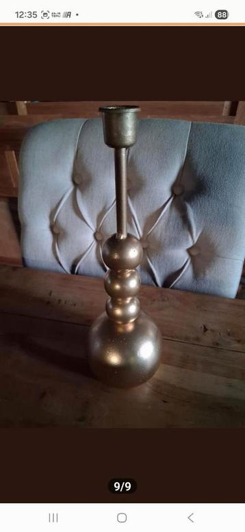 Gratis goudkleurige kandelaar. Geeft een warme sfeer aan elke kamer. Perfect voor lange dineravonden of gewoon als decoratie. Gratis af te halen!
