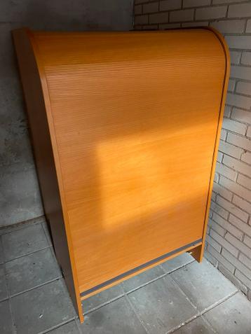 Gebruikte archiefkasten (2x) met rolluik, van zware kwaliteit. In goede staat. Ideaal voor kantoor of thuis. Een van de kasten heeft twee kleine beschadigingen aan de zijkant waar de kasten aan elkaar