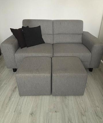 Gratis comfortabele(lengte ongeveer 1.70) Tweezitsbank (grijs)van eijerkamp; met twee bijpassende hockers. Ideaal voor een kleine woonkamer/studentenkamer/stacaravan/chalet. Gratis ophalen zwolle stad