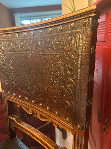 4 kasteelstoelen. Zitten lekker maar kraken soms een beetje. Twee stoelen hebben scheurtjes.