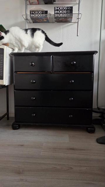 Gebruikt zwart geschilderde ladekast. Ideaal voor extra opbergruimte. Gratis af te halen.