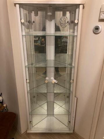Hoekvitrinekast met binnenspiegels. Nu gratis op te halen! Onbekend of verlichting nog te repareren is, doet het op dit moment niet.