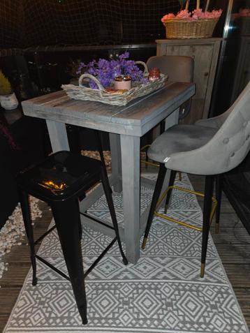 Mooie set van barkrukken, bestaande uit een zwarte en een grijze kruk. De krukken zijn in gebruikte staat, maar nog in goede conditie. Ideaal voor aan een bar of hoge tafel. De hoogte is tussen de 60