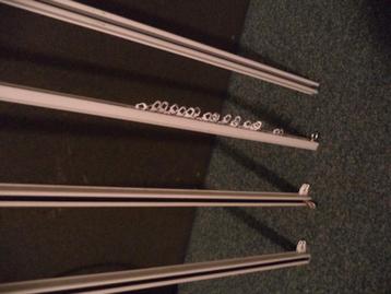 Restant gordijnrails 2 stuks 200 cm 1 stuk 140 cm 1 stuk 120 cm sommige hebben eindstopjes bovenkant gemeten is : 2 cm