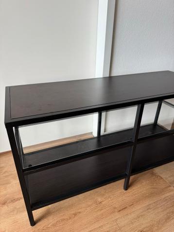 Mooie tv-meubel of dressoir met een strak design. Het meubel is in gebruikte staat en gemaakt van metaal en glas. De afmetingen zijn ongeveer 100-150 cm breed, minder dan 100 cm hoog en 25-50 cm diep.
