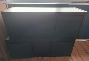 2 zwarte/bruine kallax kast met meerdere opbergvakken. Ideaal voor het opbergen van spullen in de woonkamer, slaapkamer of kinderkamer. De kast is gebruikt, maar in goede staat. Is hier altijd gebruik