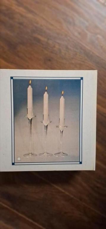 Set van 3 glazen kandelaars. Nog nooit gebruikt en gratis op te halen!