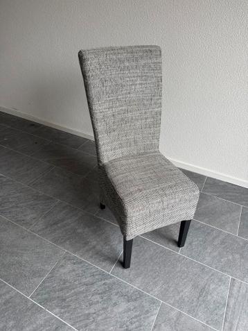 Set van zes comfortabele eetkamerstoelen met een grijze stoffen bekleding. De stoelen zijn in goede staat en passen goed in een modern interieur. Stevige constructie en een tijdloos design. Ideaal voo
