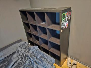 Kallax kast. Zijkant is beschadigd en er zijn 2 houten pinnen afgeboken, verder is de kast prima