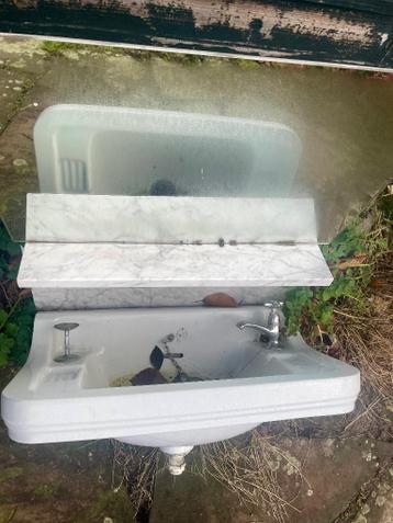 Gratis ophalen oude wastafel met spiegel en planchet marmer zoals te zien op foto, zit er een barst aan de onderkant van de wastafel