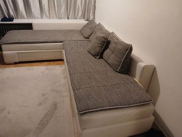 Mooie grijze hoekbank die ook als slaapbank gebruikt kan worden. De grijze kussens gaan niet meer helemaal dicht, maar verder is de bank in goede staat. Je kunt er eventueel andere kussenslopen overhe