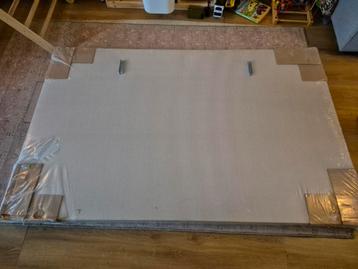 Hoofdbord voor een bed van 180, kleur beige, helemaal nieuw nog in verpakking. Hij gaat bij ons helaas niet door het trappengat dus doen wij hem weg. 190 Breed, 120 hoog.