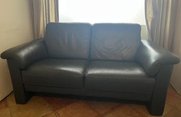 Bruine leren tweepersoonsbank. Is nog helemaal in goede staat. Niet kapot.