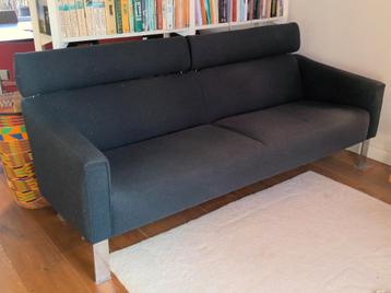 Deze bank met goed werkende verstelbare hoofdsteunen heeft op 1zitplaats een gaatje in de stof, (zie foto), is niet moeders mooiste meer, maar nog goed te gebruiken, staat verder stevig op de poten. B