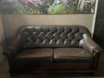 Gratis af te halen bank van echt leer en eiken hout. 1,80 Breed niet op zondag!