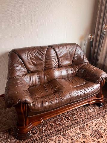 Gratis 2 pers bank met stoel in donker eiken met leren kussens