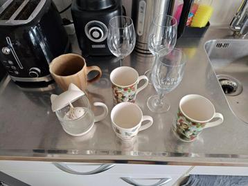 2 wijnglazen, 1 bierglas, 1 theeglas & 4 mokken. Het liefst allemaal tegelijk ophalen.