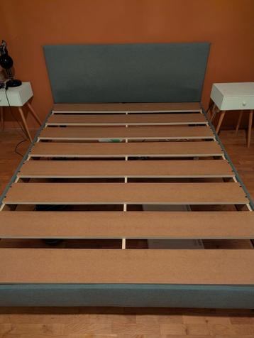 Mooi tweepersoons bedframe met lattenbodem. Het bed is in goede staat en is makkelijk te monteren. Het frame is gemaakt van stof en is grijs van kleur. Afmetingen zijn 160 cm breed en 200 cm lang. Ide