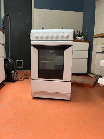 Indesit gasfornuis. Over werkt met een stekker maar bij mij slaat de stop door als ik de over aanzet. Kookdeel werkt goed. Maten 50 br, 60 d, 86 h.