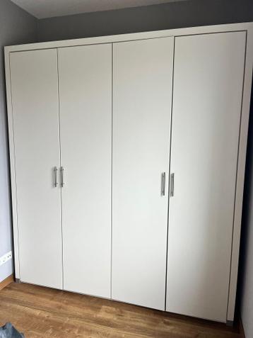 Twee witte kledingkasten: 230 cm hoog 104 cm breed en 56 cm diep. In goede staat. Gratis ophalen, wel zelf uit elkaar halen