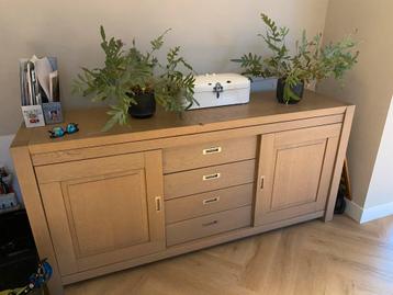 Afmetingen 188x50x88 stevig dressoir, grote kasten aan de zijkanten met schuifdeuren. Vier laden. Greywash. Deuren schuiven nog goed, maar zitten aan de onderkant los. Zie foto’s. Gratis af te halen.