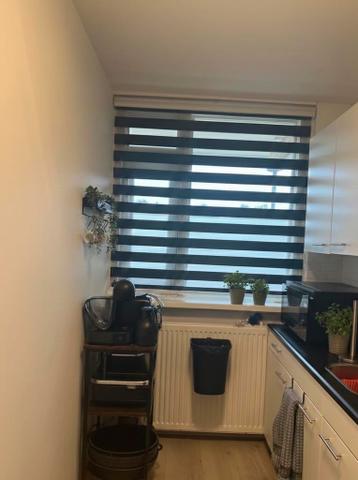 Zebra rolgordijn, ook wel duorolgordijn genoemd. Gebruikt, maar in goede staat. Zorgt voor een mooie lichtinval en privacy. Geschikt voor diverse raamtypes. Kleur: zwart/wit.