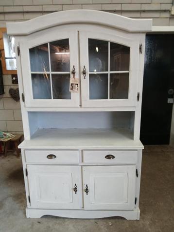 Nu gratis, omdat wij een smallere gekocht hebben leuke buffetkast in 2 delen.1.07 Cm breedste deel, 1.87 Cm hoog.met krijtverf geschildert.onderin hadden we een stereoinstallatie, dus daar is in de pl