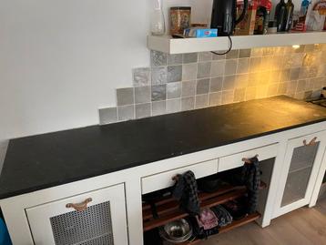 Twee hardstenen aanrechtbladen, 3cm dik. Een deel is 60 x 238 cm, het andere deel is 68 x 197 cm en bevat een spoelbak van 44 x 34 cm. Gratis op te halen in weekend van 14 maart (of in overleg) voorwa
