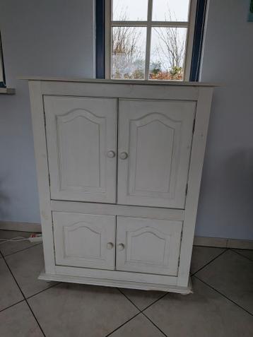 White wash tv kast. Breedte 1 meter hoogte 1 m 30 diep 62 cm kastje is onderkant beschadigd.