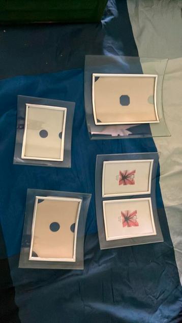 Vier glazen fotolijsten. 3X 10x15 en 1x2 foto’s 9x13.