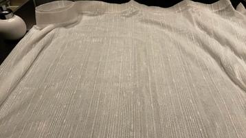 Gratis afhalen vitrage breed 4,40 m hoogte 1.12 Mtr met glansdetails . Ook beschikbaar en gratis :een stuk van 2.10 Breed en 1.30Hoog met loodstukje in de zoom
