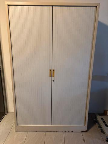 Gratis af te halen kast met roldeuren. De kast is gebruikt, maar nog in goede staat. Ideaal voor opslag in garage, schuur of kantoor. Afmetingen zijn geschat. Zelf ophalen.