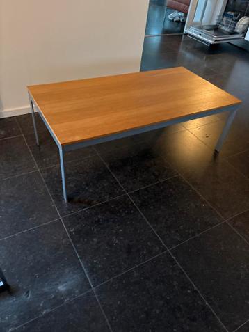 Mooie salontafel met metalen poten.de tafel is in gebruikte staat, maar nog in goede conditie. Afmetingen: 120 cm lang, 60 cm breed. Hoogte 40 cm
