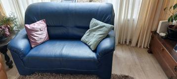 Een comfortabele blauwe fauteuil. De fauteuil is in gebruikte staat en gemaakt van leer. De breedte is tussen de 75 en 100 cm en de diepte is minder dan 75 cm. Perfect om heerlijk in te ontspannen!